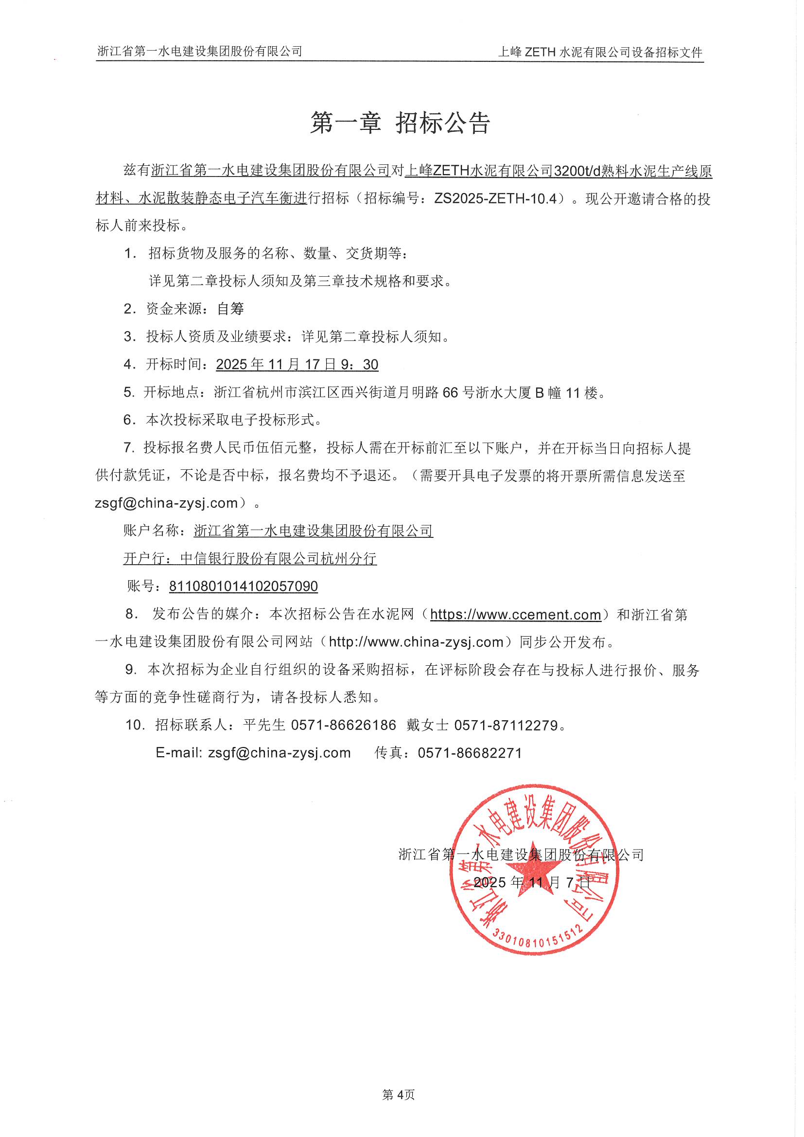 上峰ZETH水泥有限公司3200t/d熟料水泥生產(chǎn)線(xiàn)原材料、水泥散裝靜態(tài)電子汽車(chē)衡招標(biāo)公告